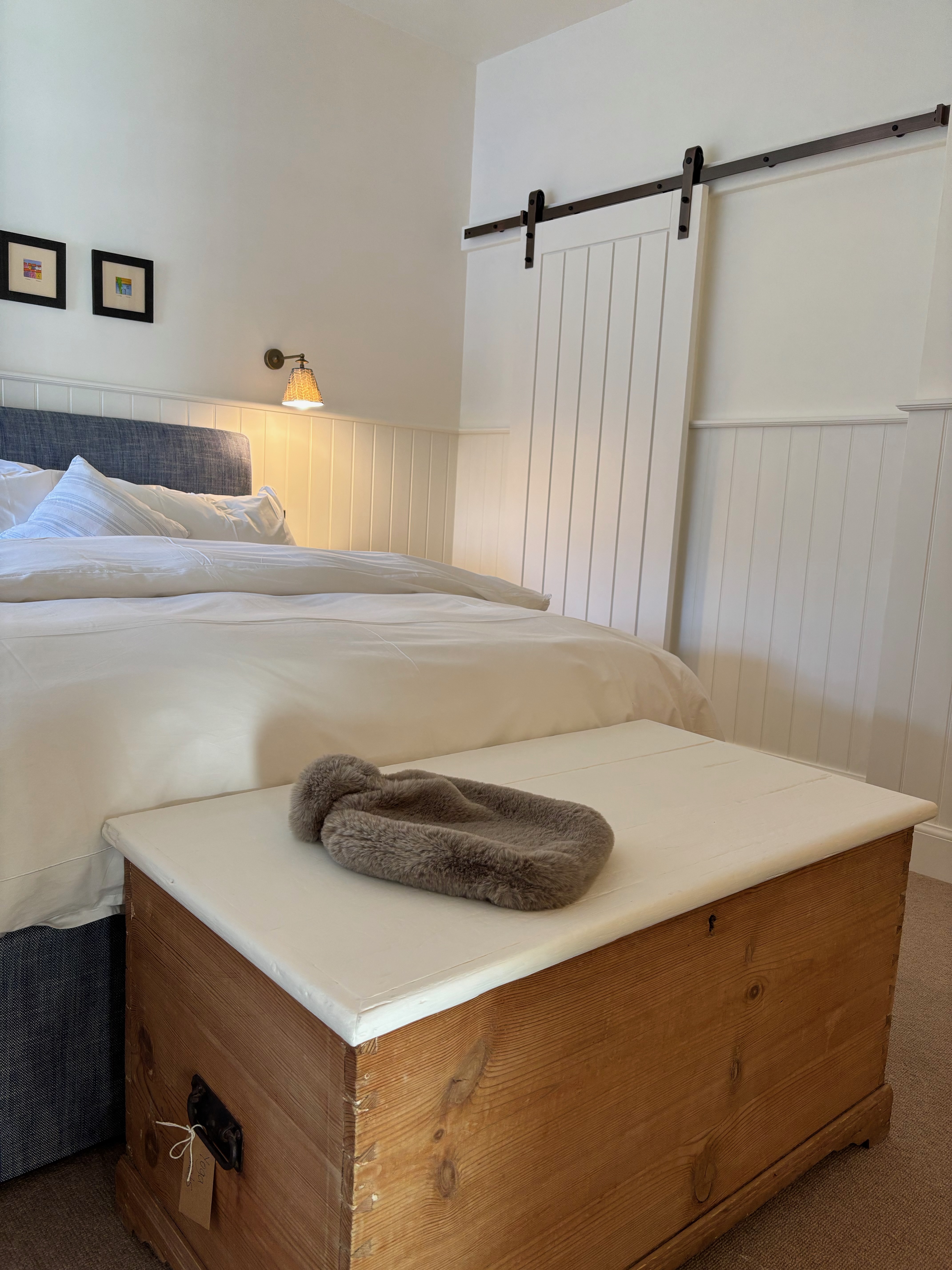 Our bed linen is starched for that wonderful crisp clean feeling. There are roof blinds in the bedroom which are operated by solar power if you want to look at the stars! There are two bathrobes for use during your stay. The bathroom is stocked with L’Occitane products and White Company towels.