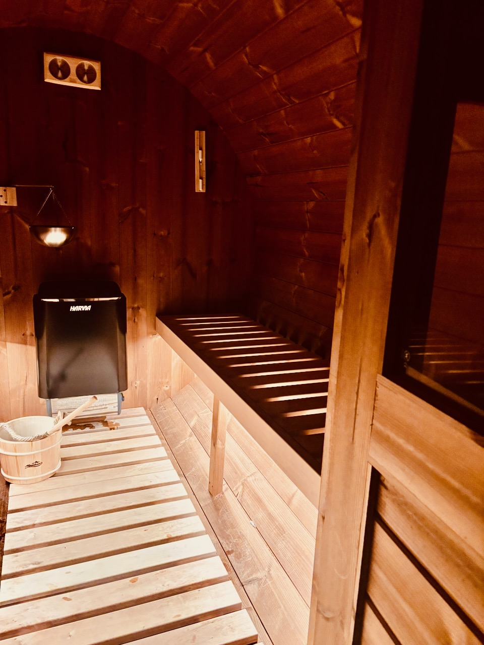 Opposite the Pijjery in a private open barn you'll find our sauna. We think (as do many people) that saunas aid relaxation and rest whilst promote good sleep.